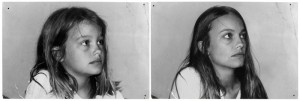 Und dann gibt es die Bilderpaare, denen man die dazwischen liegenden 25 Jahre kaum ansieht, weil sich der Mensch – in diesem Fall ein schwarzweiß fotografiertes kleines Mädchen links, rechts ihr quasi genauso aussehendes erwachsenes Pendant – kaum verändert hat. Faszinierend:
