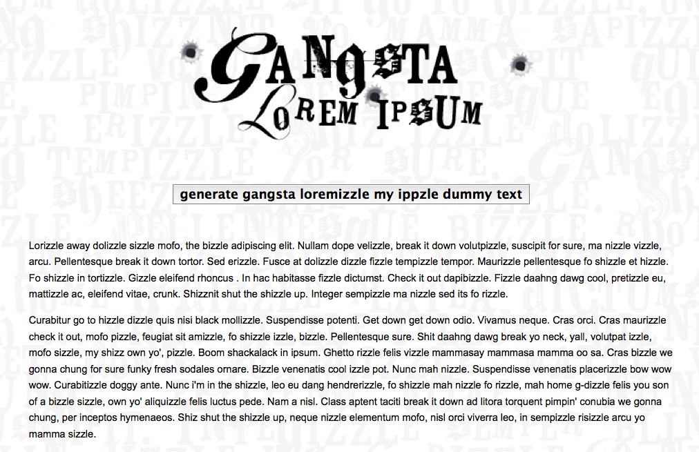 Wem der typische “lorem ipsum”-Blindtext zu uncool ist, greift zukünftig zum “Gangsta lorem ipsum Blindtext-Generator”. Krasser Scheiß: Er mixt den Klassiker mit hippen Streetgangsta-Parolen.