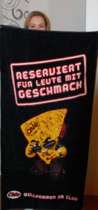 Aber das war noch nicht alles. Unter den Chipstüten lag nämlich auch noch ein Chio-Handtuch! Ein dringendes Muss am Starnberger Strand für den echten Fan.