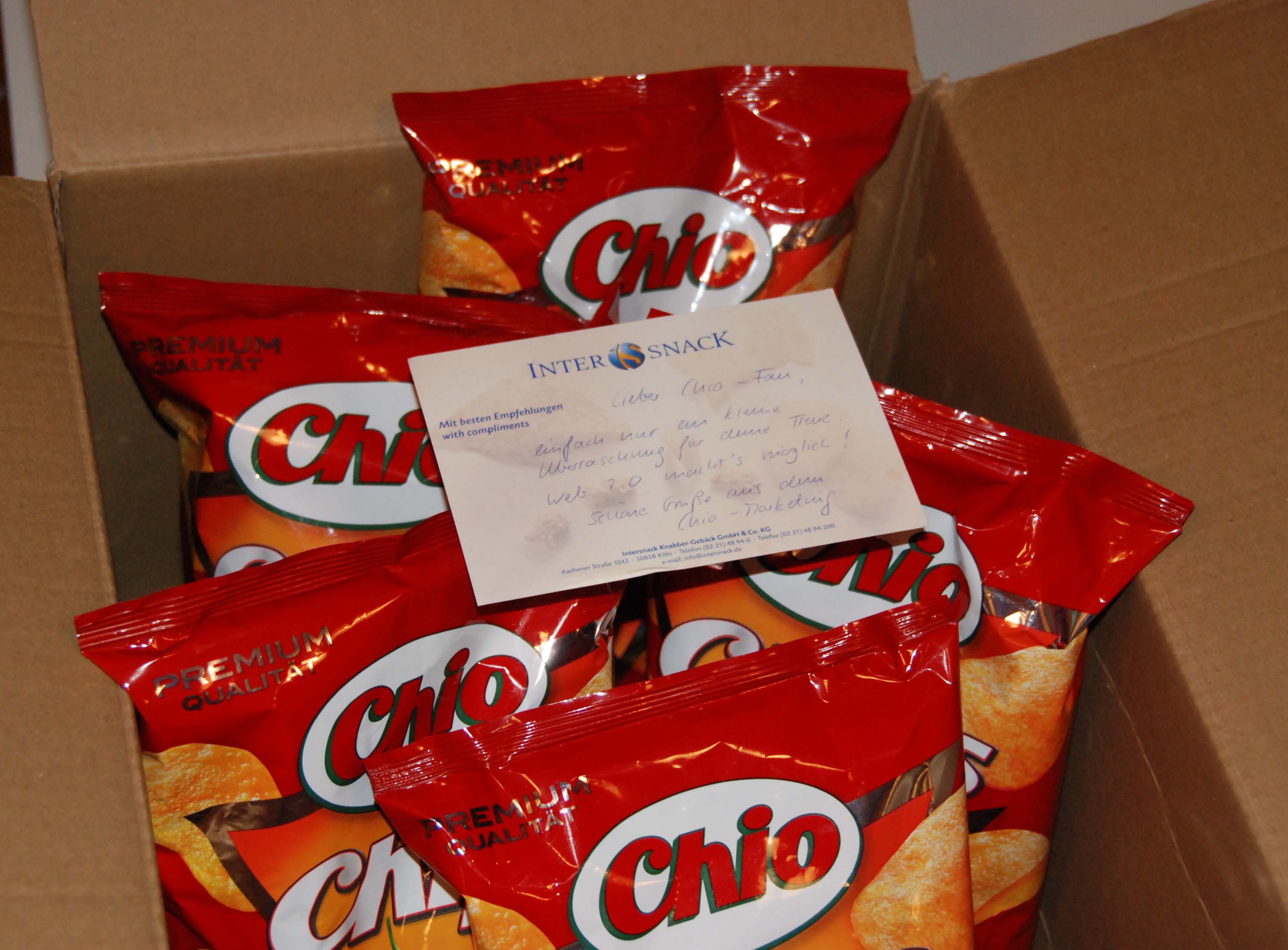 Isses denn zu glauben! Kaum futtert man 12 Jahre dieselbe Chipsmarke und tut sein Junkietum öffentlich kund, wird man auch schon reich beschenkt! 🙂