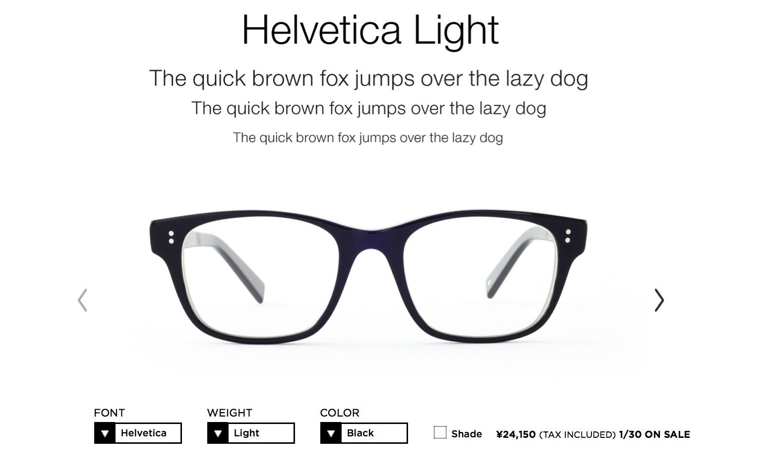 Ab 30. Januar gehen die Font-Brillen zum Preis von umgerechnet ca. 150 € in den Verkauf – in je 3 Farben (schwarz, dunkelbraun meliert, transparent) und je 3 Schriftschnitten bzw. Materialstärken (Light/Regular/Bold). Auch als Sonnenbrille sind sie erhältlich; man klicke dazu schlicht das Kästchen “shade” an.