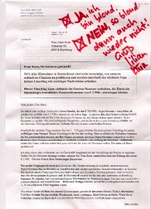 Nur zu doof, dass ich nebenbei auch eine schreckliche Spielverderberin bin. Statt nämlich das beiliegende, noch viel offizieller aussehende Formular auszufüllen, bin ich schwuppdiwupp handschriftlich tätig geworden und habe das Anschreiben direkt zurückgefaxt. Ich bin gespannt auf die Antwort, mache mir aber keine großen Hoffnungen. 🙂