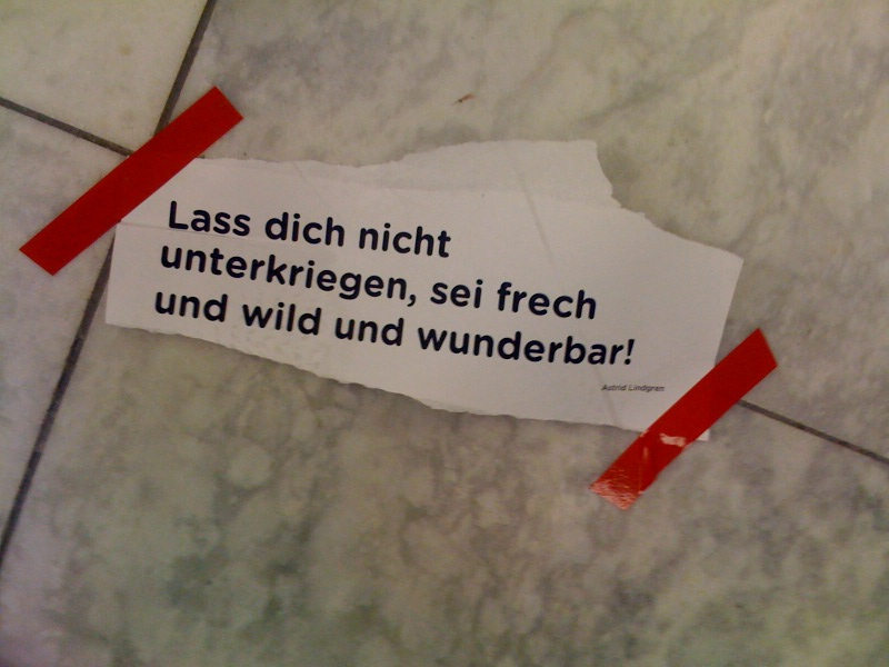 [Für meine sehbehinderten Leser – da steht: “Lass dich nicht unterkriegen, sei frech und wild und wunderbar!” Astrid Lindgren]